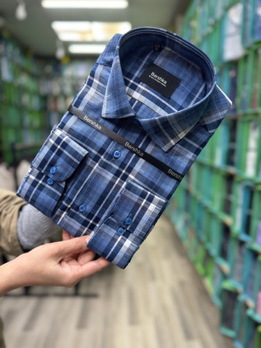 پیراهن مردانه چارخونه نخی آستین بلند تک جیب قواره آزاد کد ۳۰۰۰۱