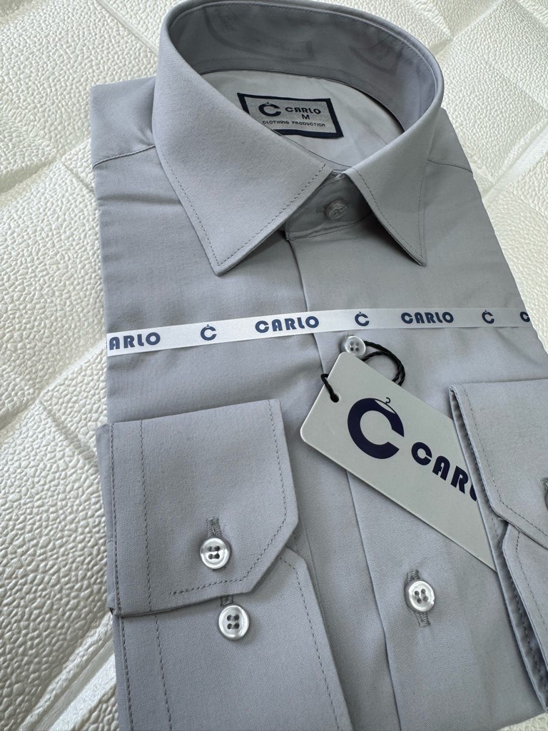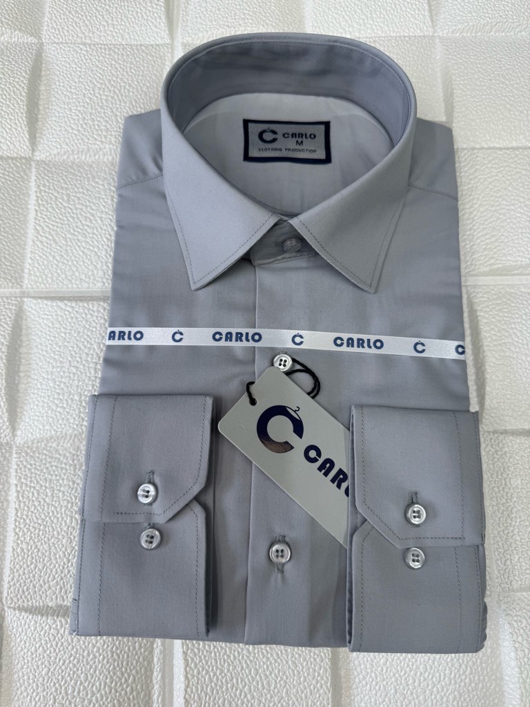 پیراهن مردانه تترون ساده طوسی روشن دوخت فرنگی پارچه بروجرد قواره آزاد ۱۰۰۲۸