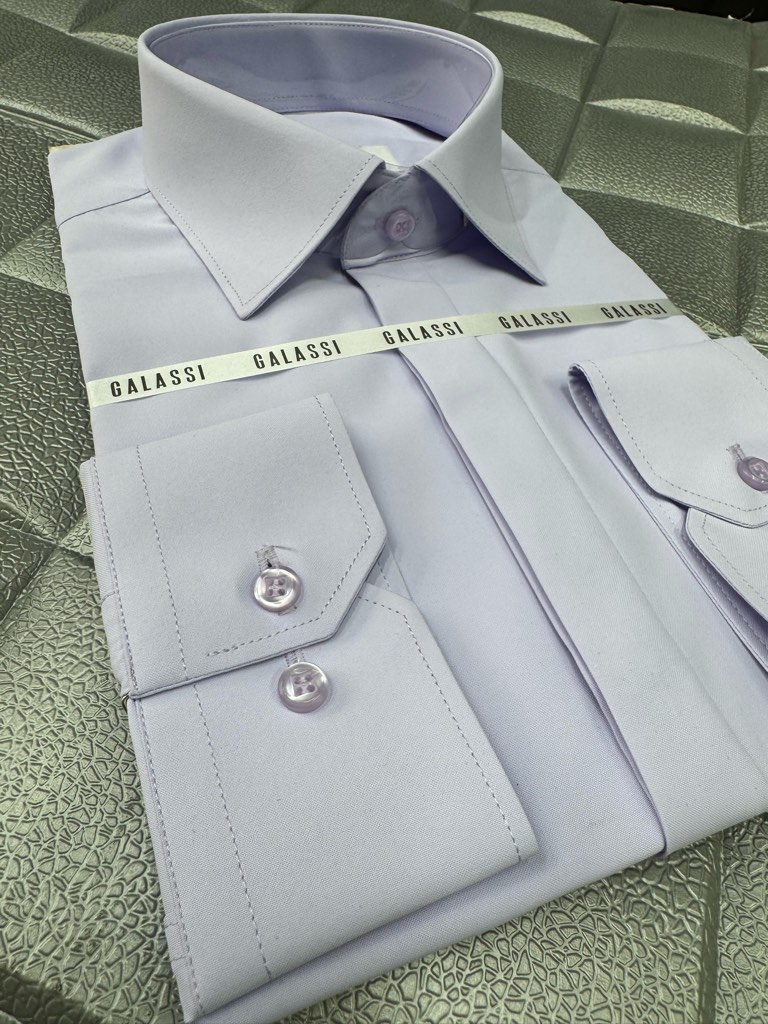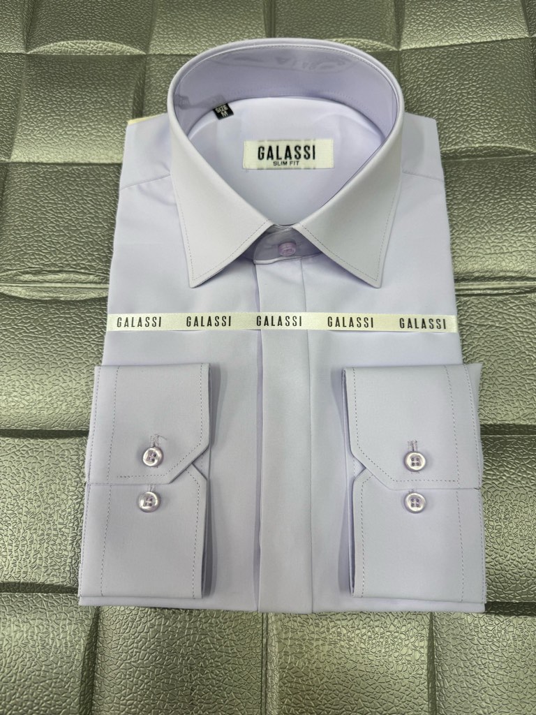 پیراهن مردانه آستین بلند پارچه دوشین یاسی اسلیم فیت دکمه مخفی بدون جیب کد ۱۱۱۰۱۴