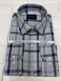 پیراهن مردانه چارخونه نخی آستین بلند تک جیب قواره آزاد کد ۳۰۰۰۱