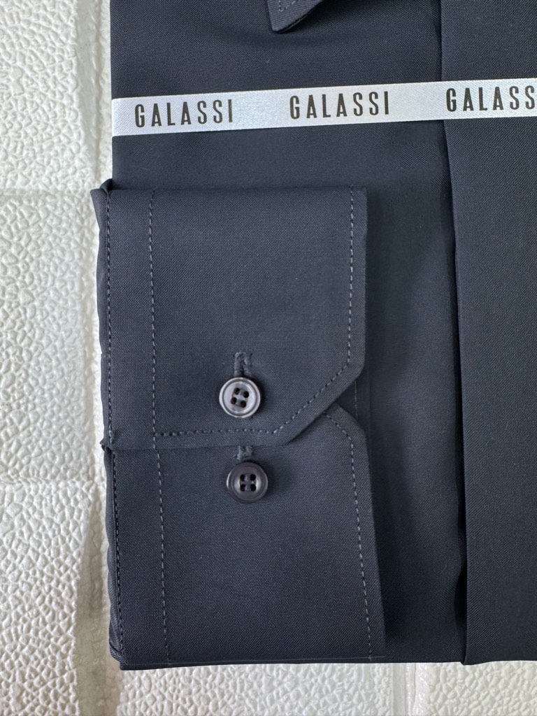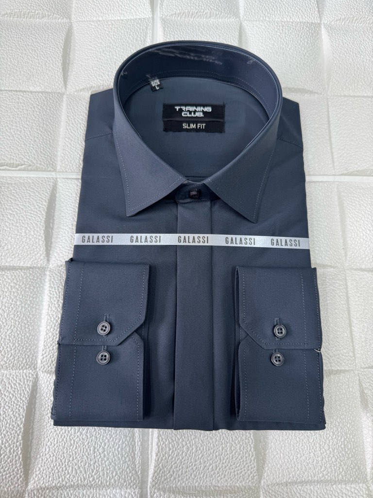 سایز پیراهن مردانه آستین بلند پارچه دوشین زغالی اسلیم فیت دکمه مخفی