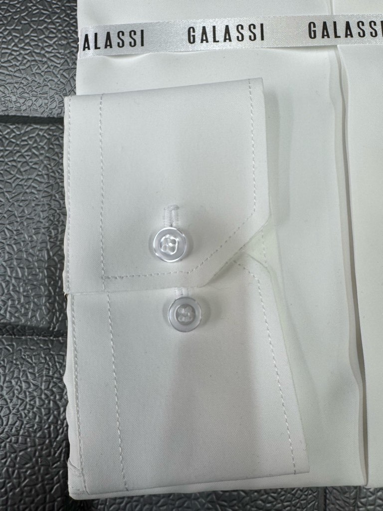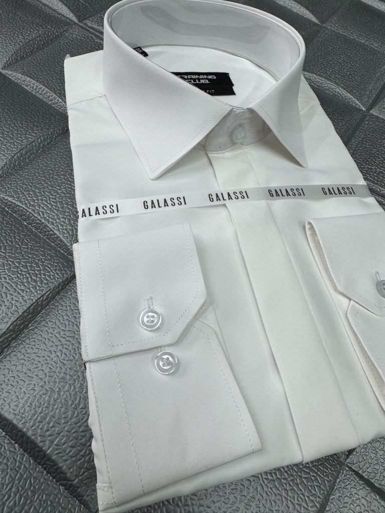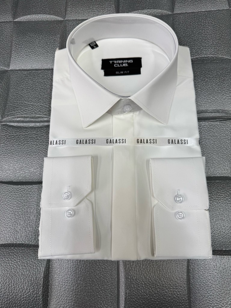 پیراهن مردانه آستین بلند پارچه دوشین شیری اسلیم فیت دکمه مخفی کد ۱۱۱۰۱۸