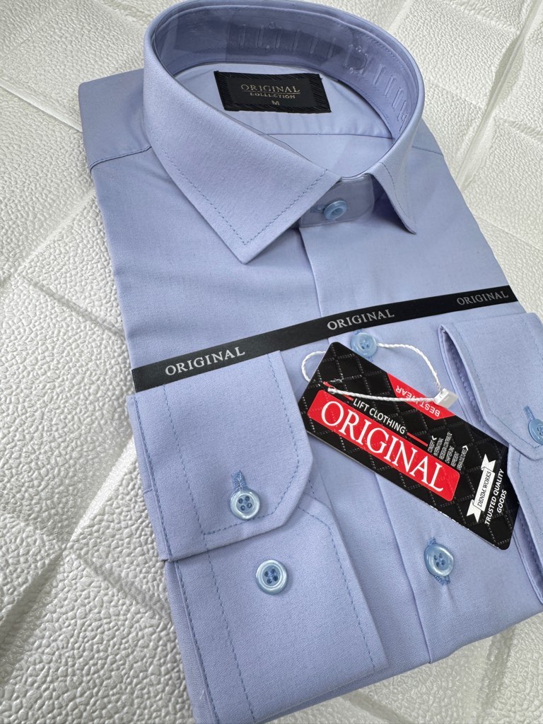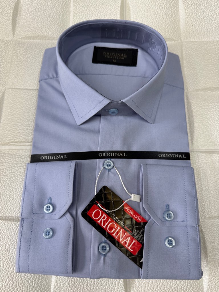 پیراهن مردانه تترون بروجرد آبی روشن آستین بلند تک جیب قواره آزاد کد ۱۵۰۴