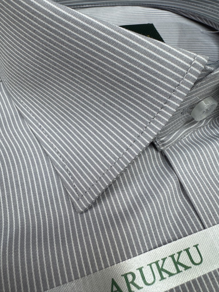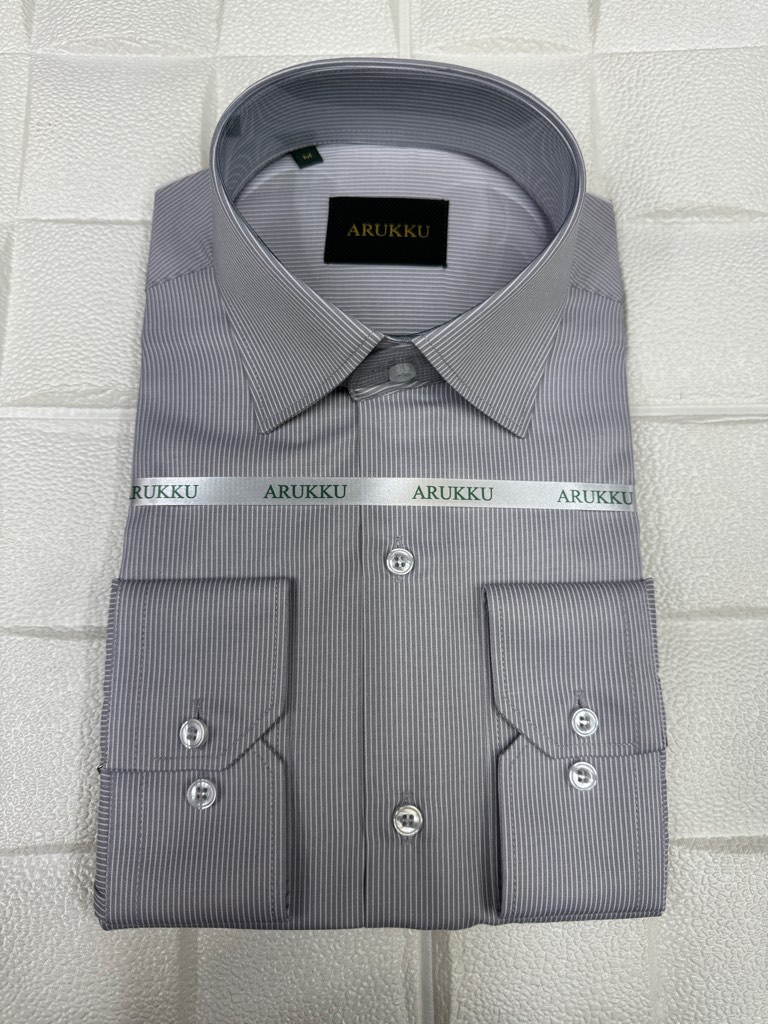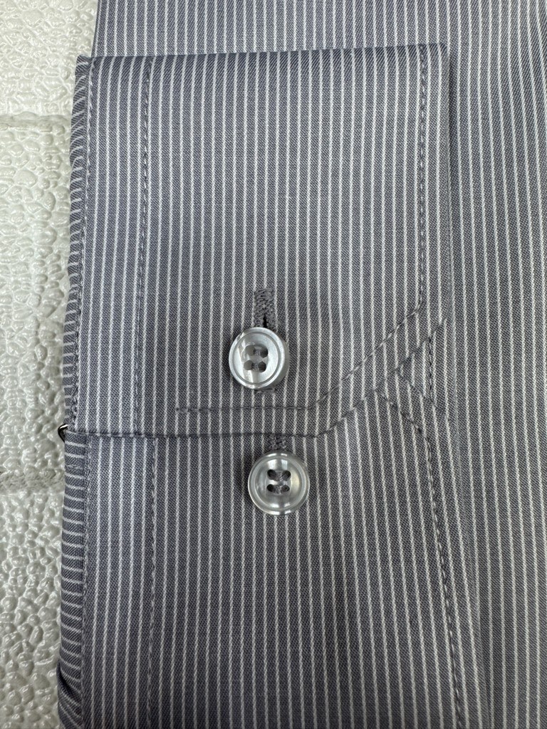 پیراهن مردانه آستین بلند راه راه ریز زمینه طوسی روشن قواره آزاد تک جیب همای