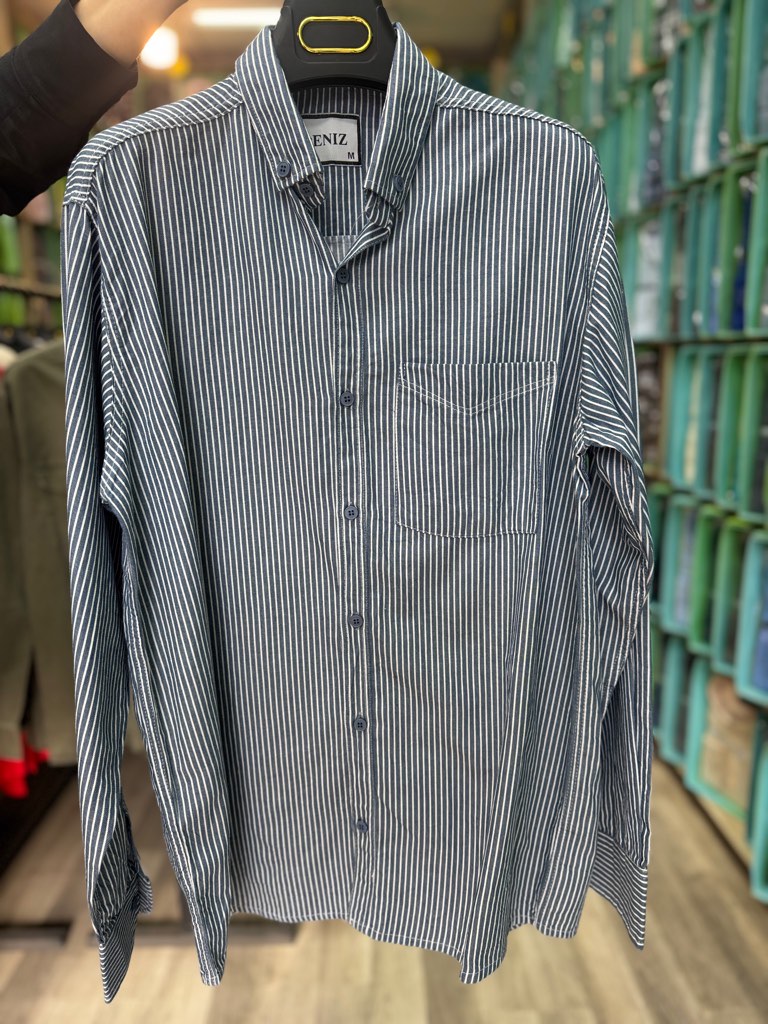جدول سایز پیراهن راه راه پنبه زمینه آبی آستین بلند تک جیب قواره آزاد همای