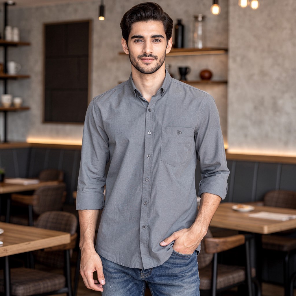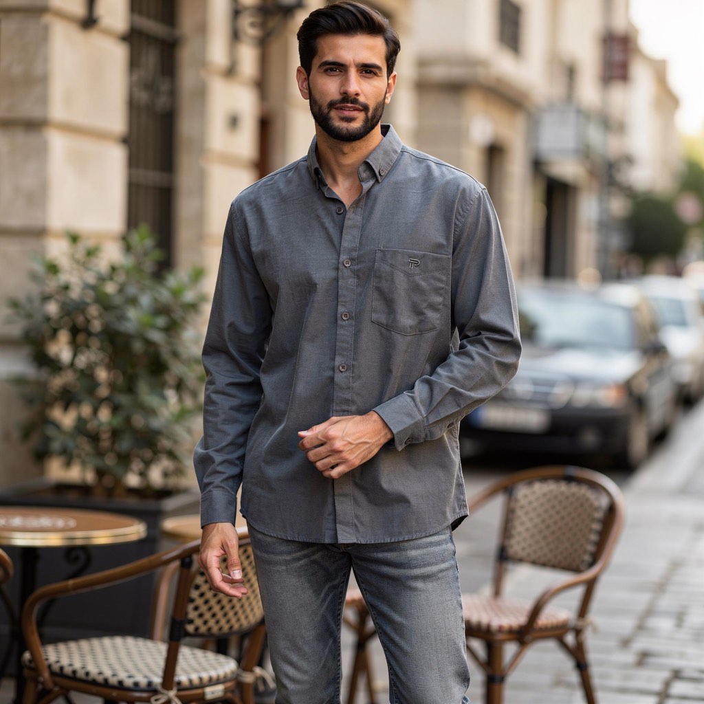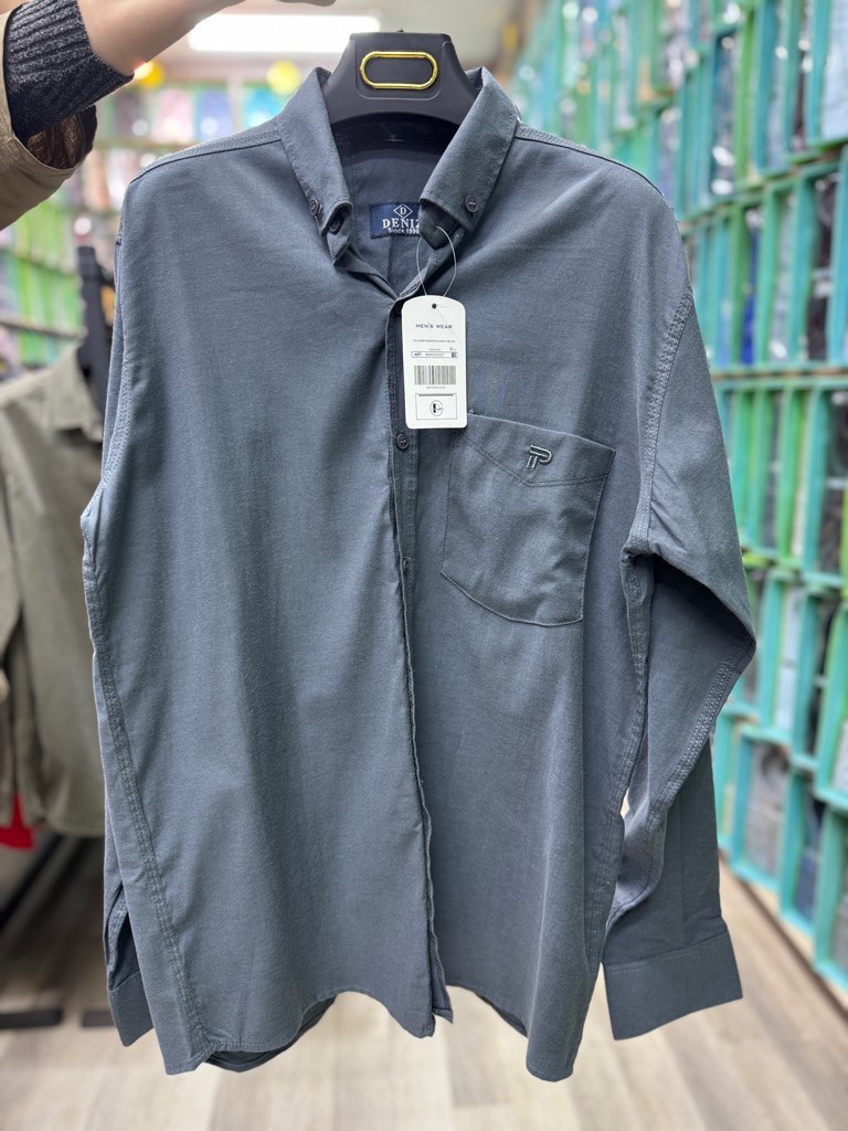 پیراهن ساده آستین بلند تک جیب طوسی قواره آزاد همای کد ۴۴۵۹۳