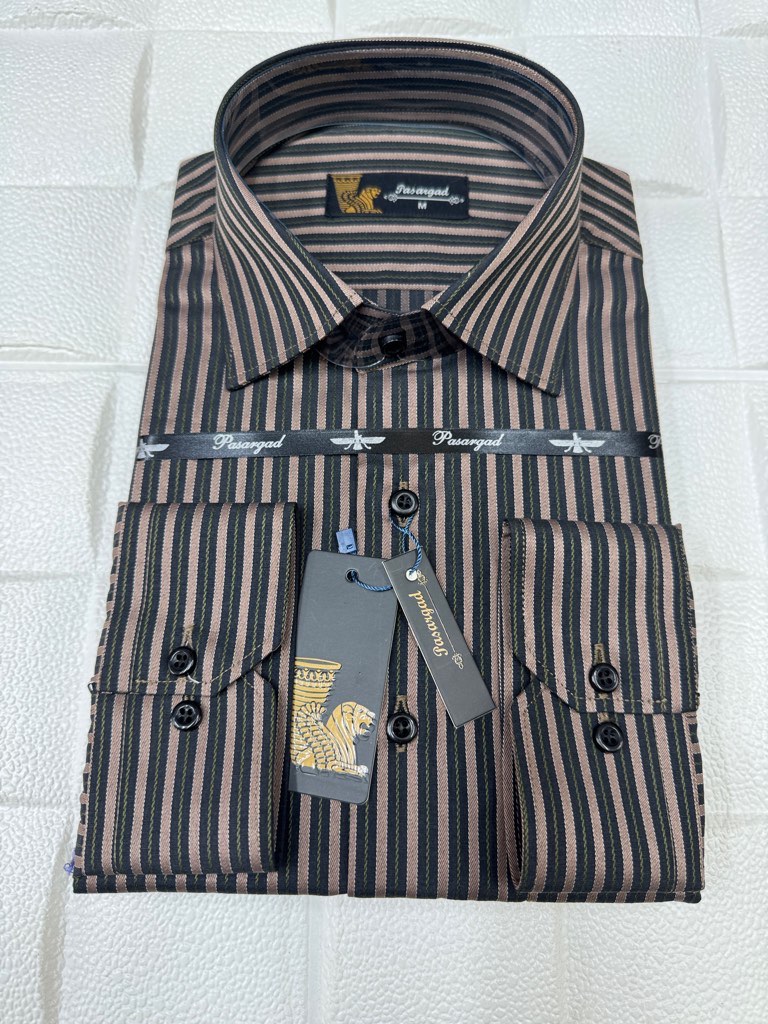 جدول سایز پیراهن مردانه آستین بلند کلاسیک  راه راه قواره آزاد تک جیب homaymen