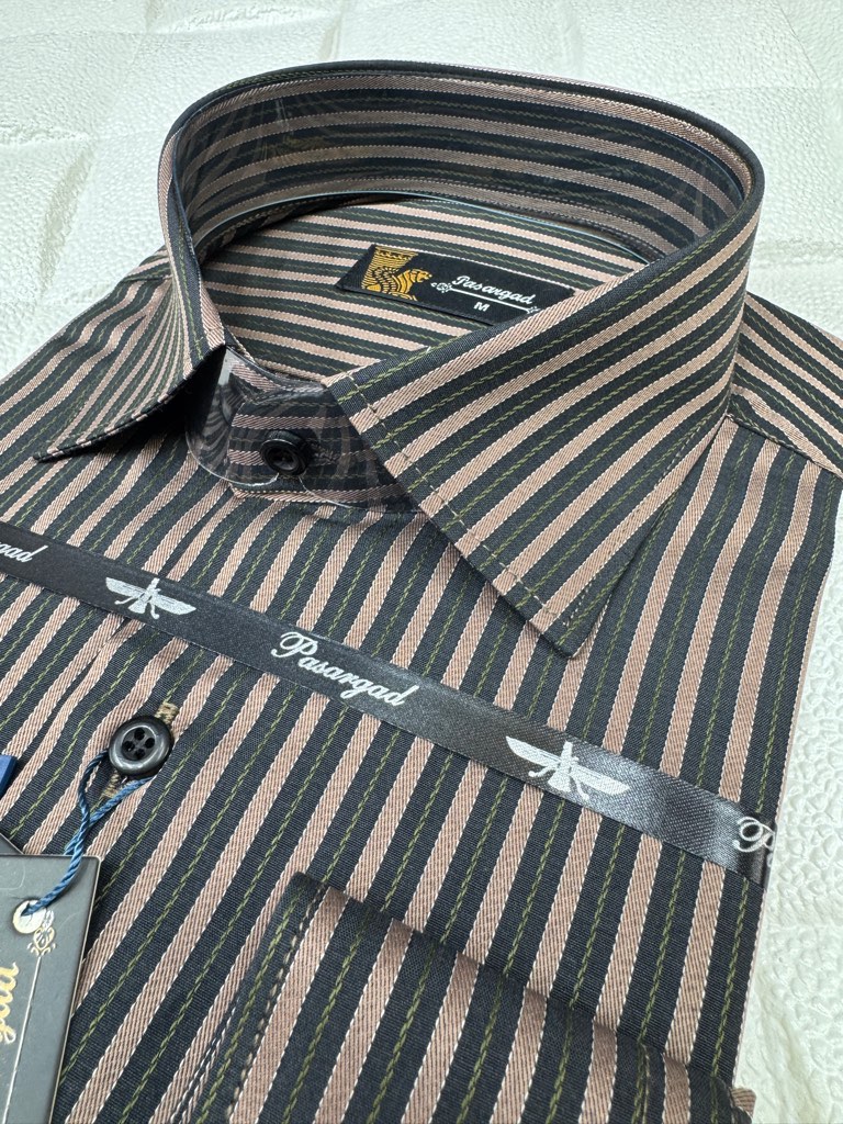 پیراهن مردانه آستین بلند راه راه قواره آزاد تک جیب همای