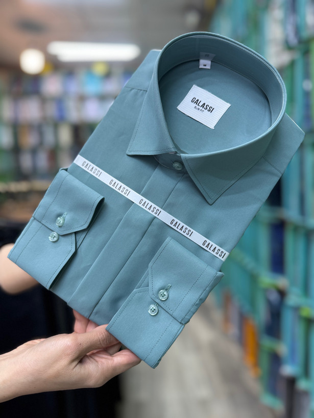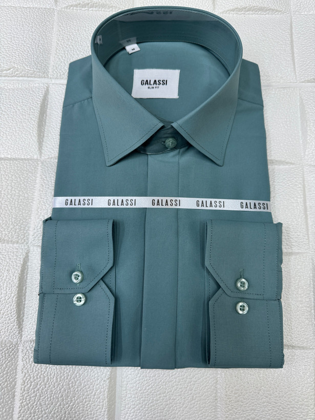 پیراهن مردانه آستین بلند پارچه دوشین اسلیم فیت دکمه مخفی بدون جیب همای کد ۱۱۱۰۲۸