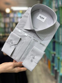 پیراهن مردانه آستین بلند نقره ای پارچه دوشین اسلیم فیت دکمه مخفی بدون جیب همای کد ۱۱۱۰۲۶