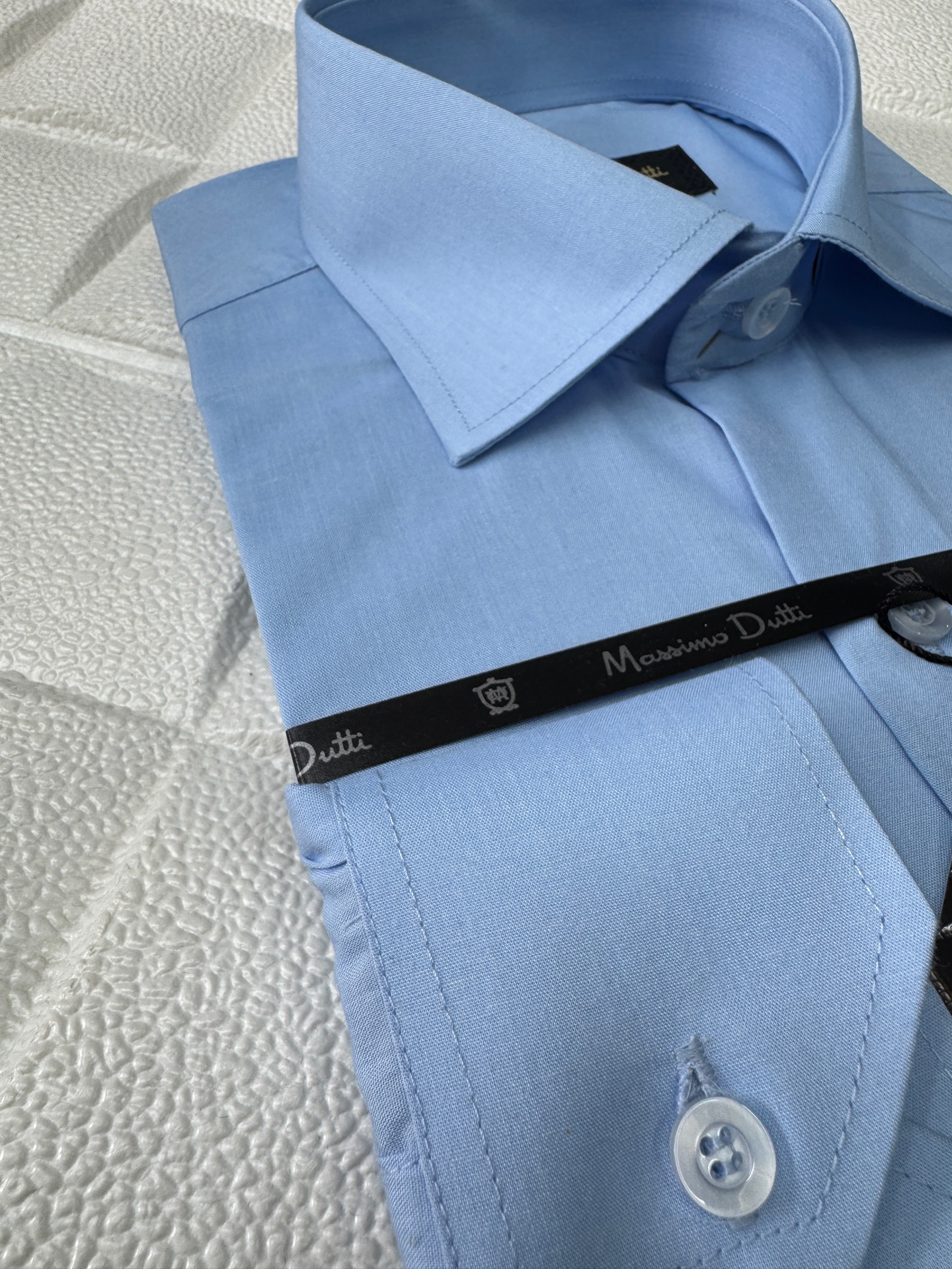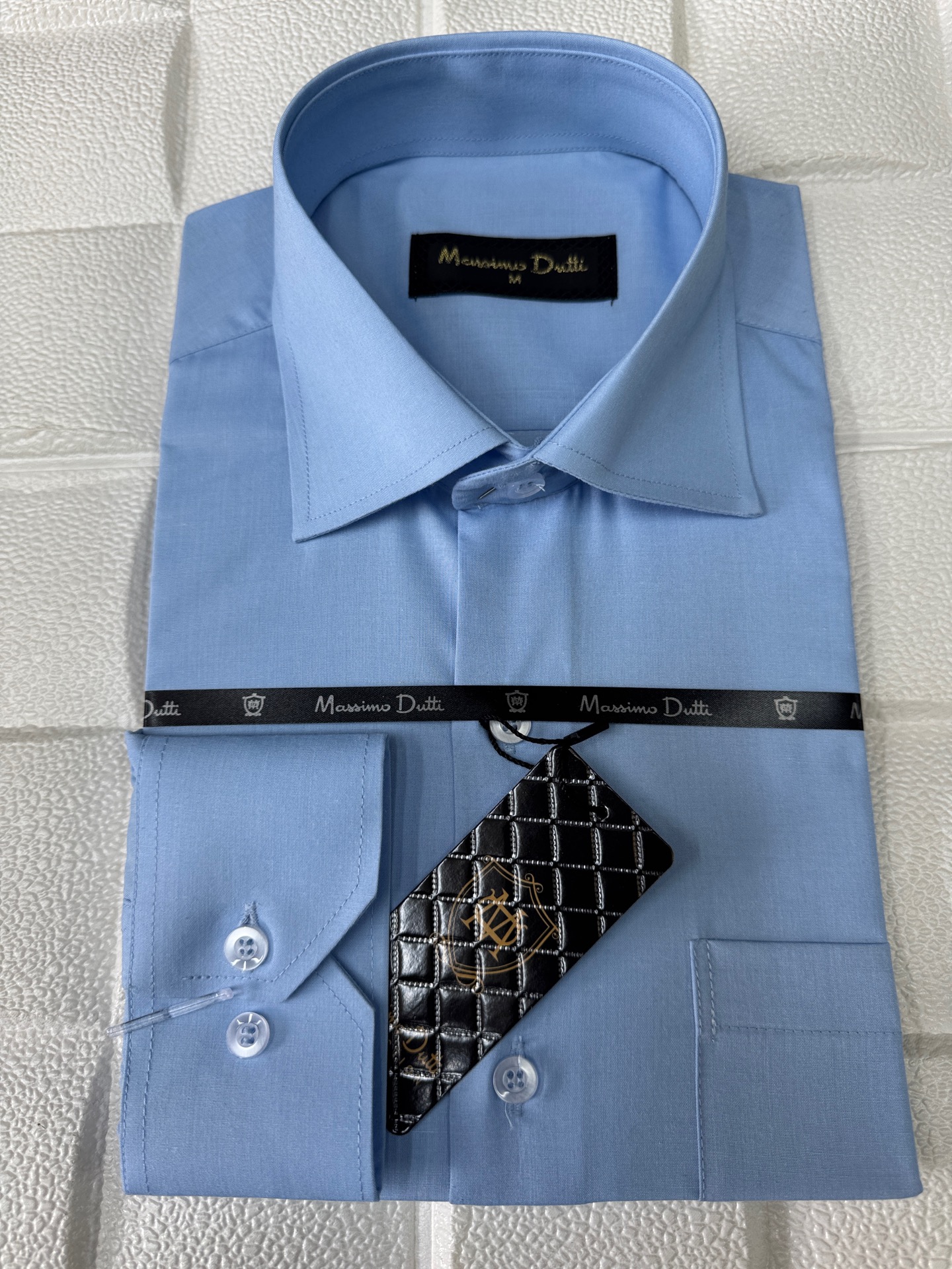 پیراهن مردانه تترون بروجرد آبی روشن آستین بلند تک جیب قواره آزاد همای کد ۱۹۰۷