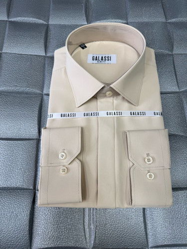 پیراهن مردانه آستین بلند پارچه دوشین استخوانی اسلیم فیت دکمه مخفی کد۱۱۱۰۲۲