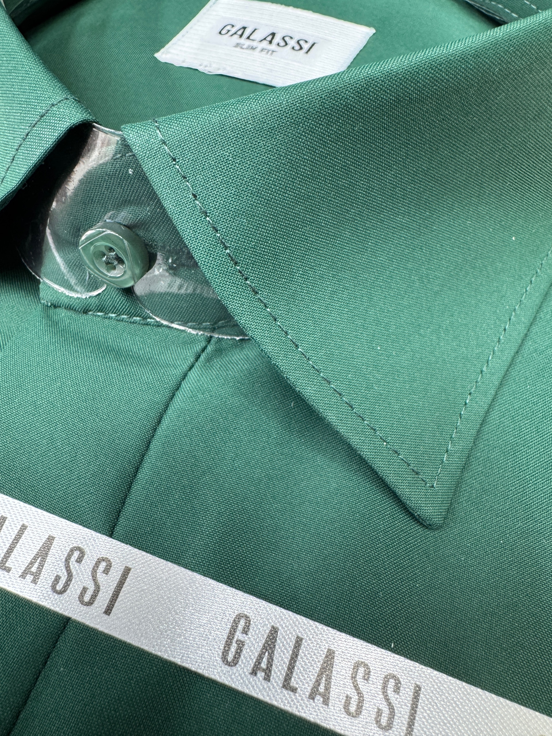پیراهن مردانه آستین بلند پارچه دوشین سبز اسلیم فیت دکمه مخفی بدون جیب کد ۱۱۱۰۱۶