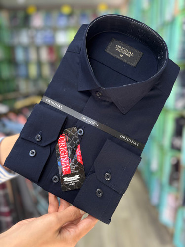 پیراهن مردانه آستین بلند تترون ساده سرمه ای سیر پارچه بروجرد ۱۰۰۳۹