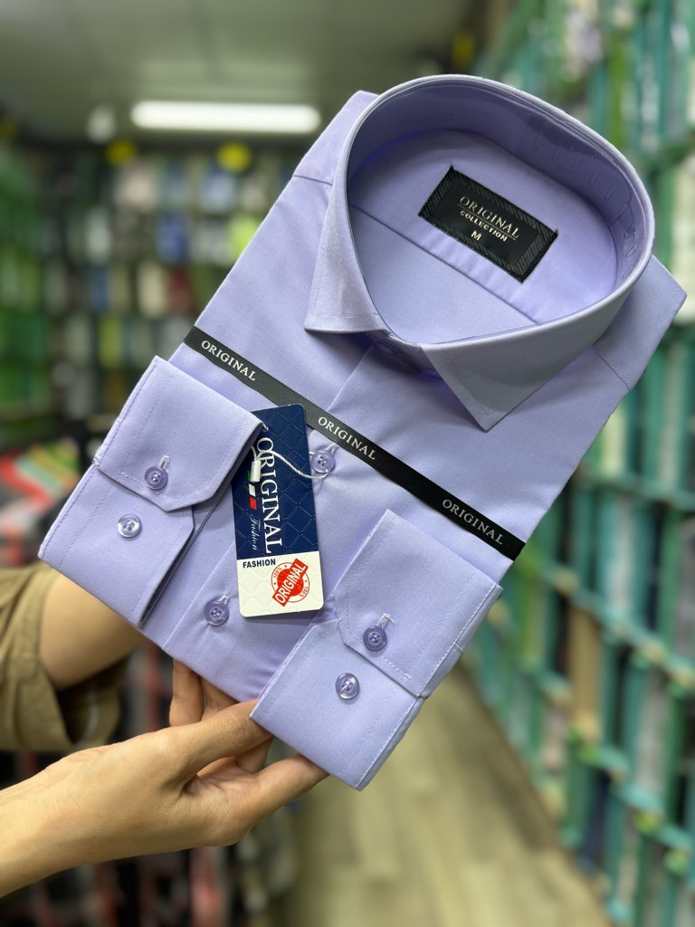 پیراهن مردانه آستین بلند قواره آزاد دوخت فرنگی یاسی روشن پارچه بروجرد ۱۰۰۳۲