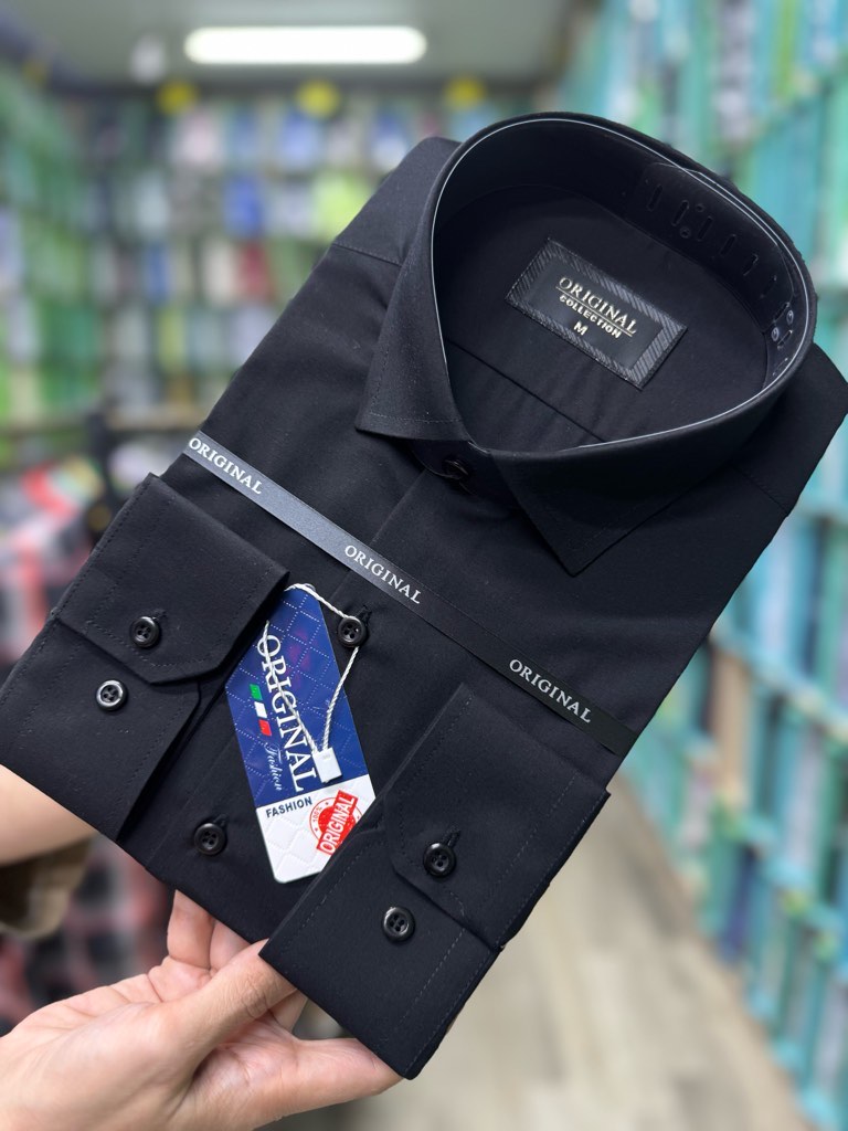 پیراهن مردانه تترون بروجرد مشکی آستین بلند تک جیب قواره آزاد کد ۱۵۰۳۴