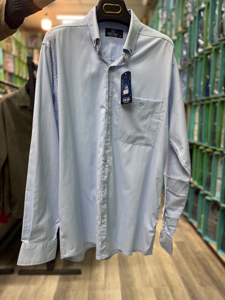 پیراهن ساده آستین بلند تک جیب آبی یخی قواره آزاد همای کد ۴۴۲۳۱