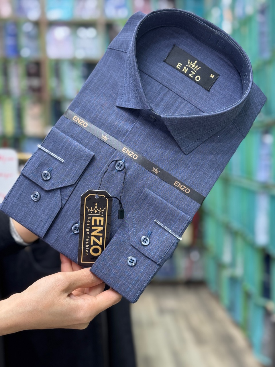 پیراهن مردانه بلند تک جیب آبی قواره آزاد همای کد ۱۵۵۹