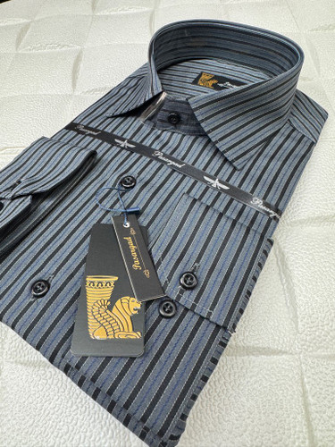 پیراهن مردانه آستین بلند راه راه قواره آزاد تک جیب همای کد ۲۰۰۱۸