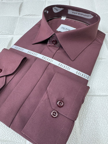 پیراهن مردانه آستین بلند زرشکی پارچه دوشین اسلیم فیت دکمه مخفی بدون جیب همای کد ۱۱۱۰۹