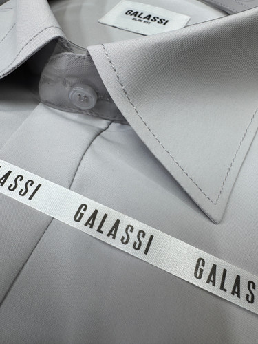 پیراهن مردانه آستین بلند نقره ای پارچه دوشین اسلیم فیت دکمه مخفی بدون جیب همای کد ۱۱۱۰۲۶