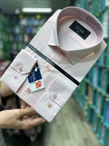 پیراهن مردانه تترون بروجرد صورتی ملایم آستین بلند تک جیب قواره آزاد کد ۱۵۰۲