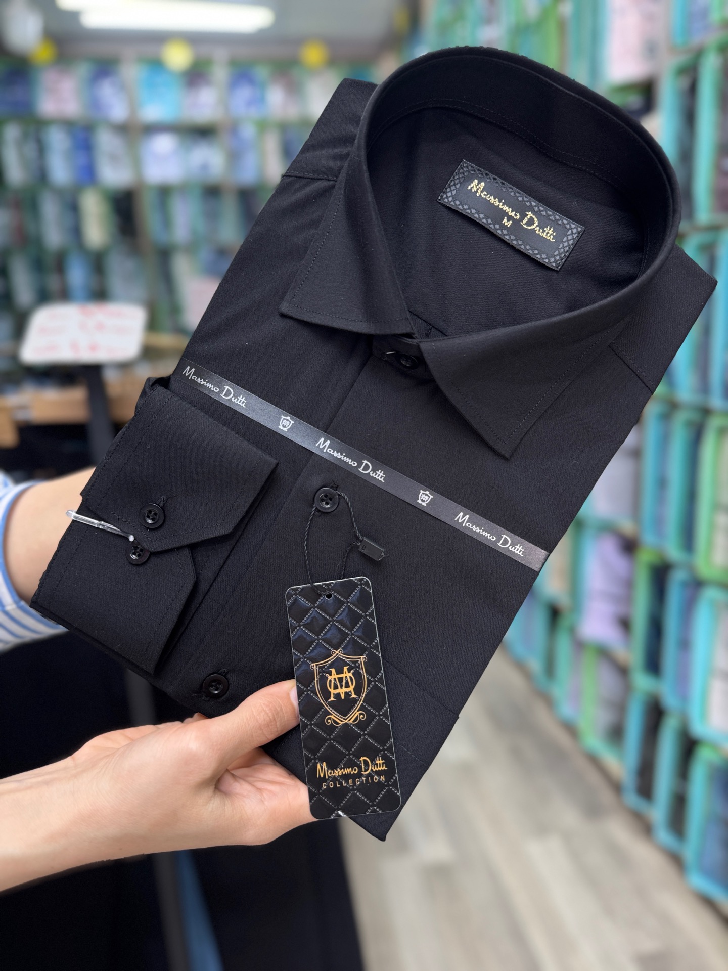 پیراهن مردانه آستین بلندقواره آزاد تترون بروجرد مشکی دوخت فرنگی کد ۱۰۰۳۴