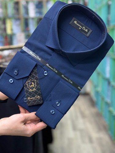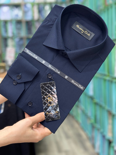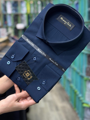 پیراهن مردانه آستین بلند تترون ساده سرمه ای سیر پارچه بروجرد ۱۰۰۳۹