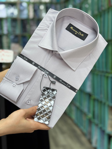 پیراهن مردانه تترون بروجرد نقره ای آستین بلند تک جیب قواره آزاد همای کد ۱۹۲۸