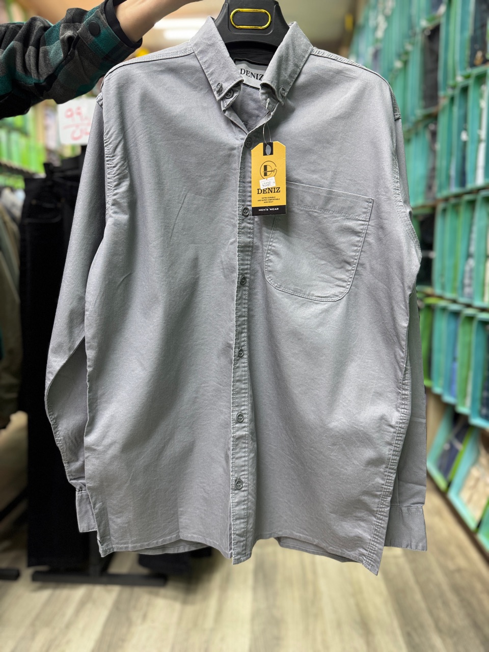 پیراهن مردانه تترون بروجرد خاکستری آستین بلند تک جیب قواره آزاد کد ۱۵۰۸