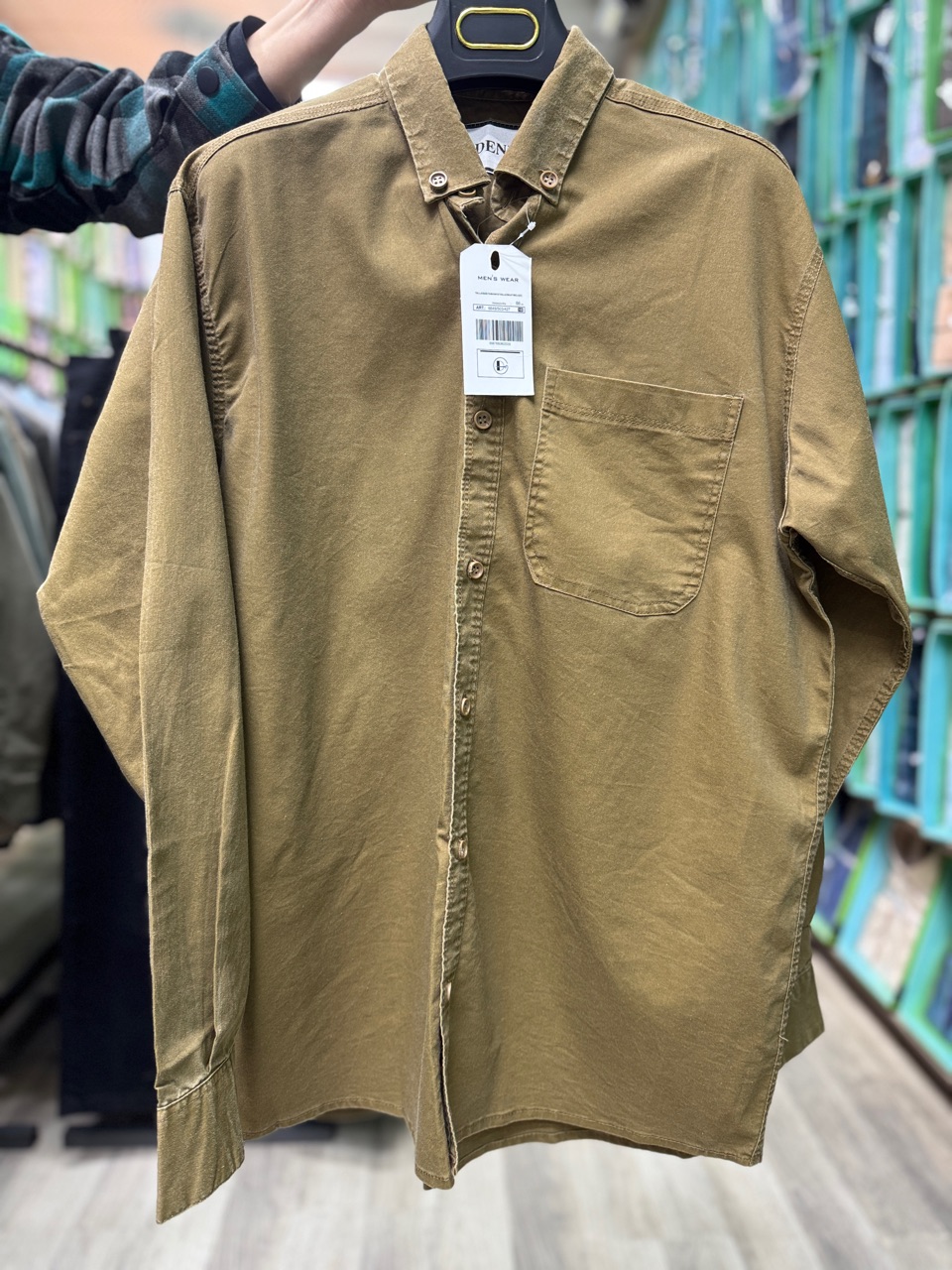 پیراهن مردانه آستین بلند تترون ساده نباتی روشن تک جیب پارچه بروجرد ۱۰۰۱۶