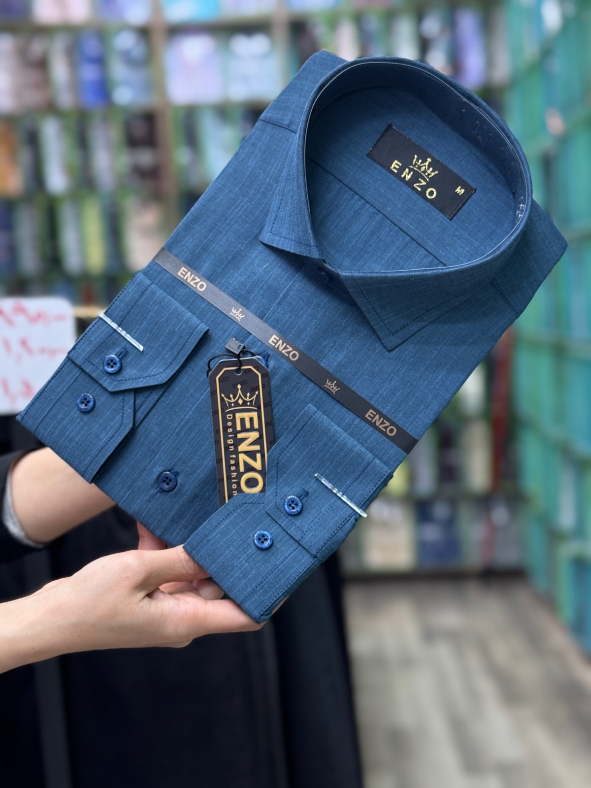 پیراهن مردانه آستین بلند تترون ساده نوک مدادی پارچه بروجرد کد ۱۰۰۳۱