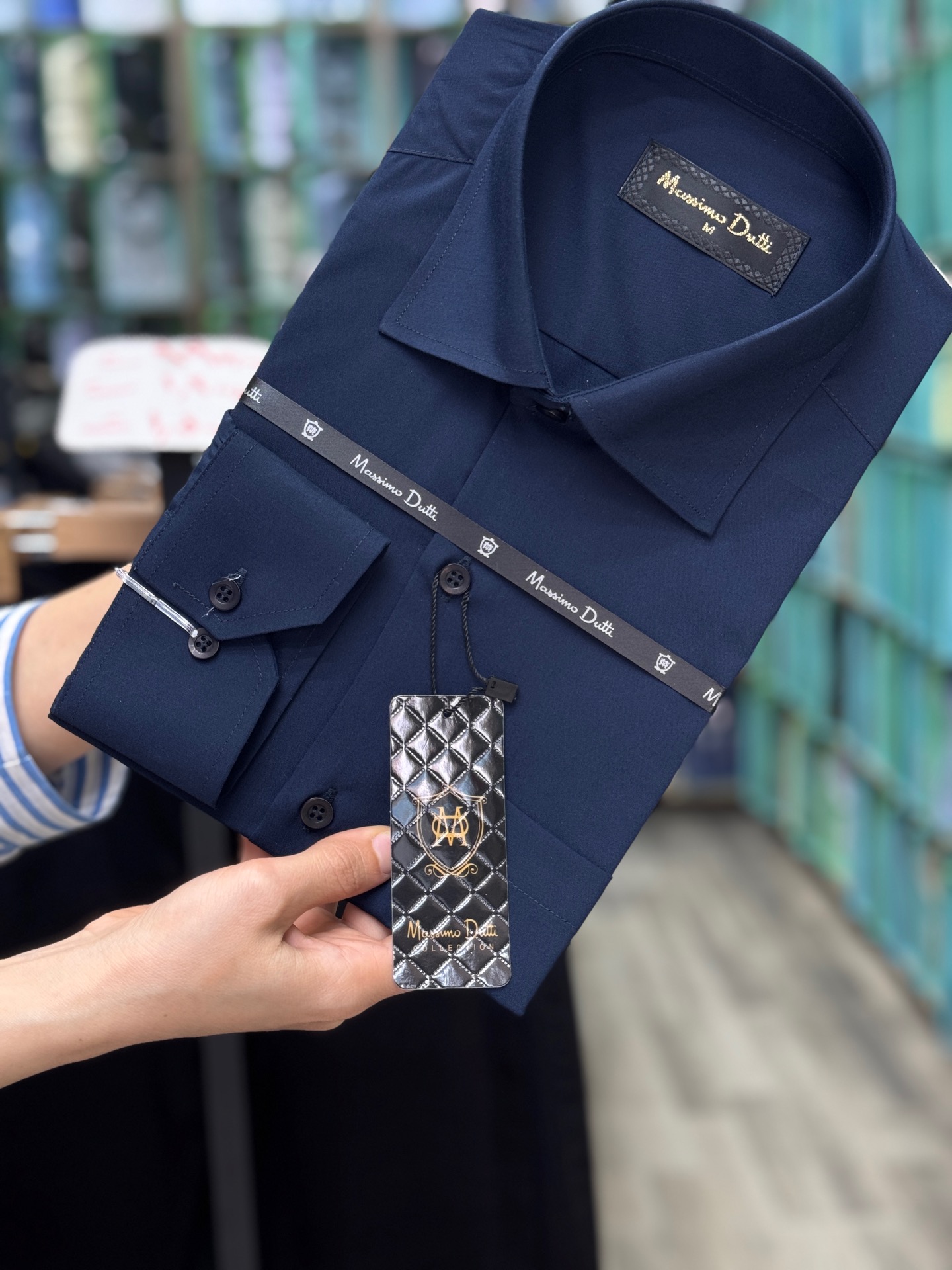 پیراهن مردانه آستین بلند تترون ساده سرمه ای سیر پارچه بروجرد ۱۰۰۳۹