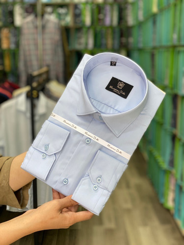 پیراهن مردانه آستین بلند تترون ساده آبی یخی پارچه بروجرد ۱۰۰۰۴
