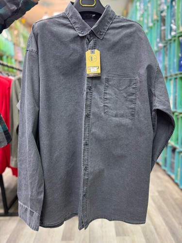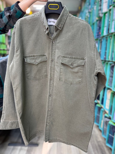 پیراهن کتان کش سنگ شور آستین بلند تک جیب طوسی سیر قواره آزاد کد ۲۰۴