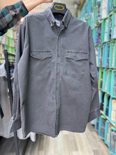 پیراهن کتان کش سنگ شور آستین بلند تک جیب طوسی روشن قواره آزاد کد ۲۰۵