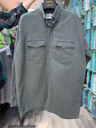 پیراهن کتان کش سنگ شور آستین بلند تک جیب سبز روشن قواره آزاد کد ۲۰۲
